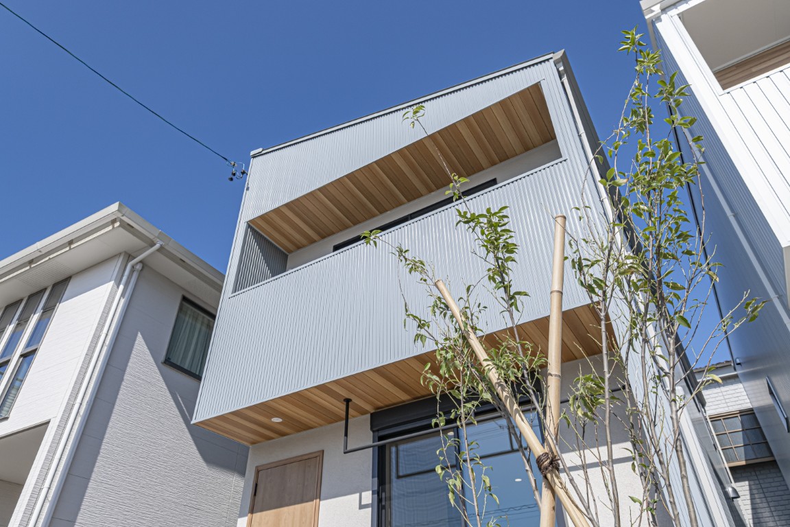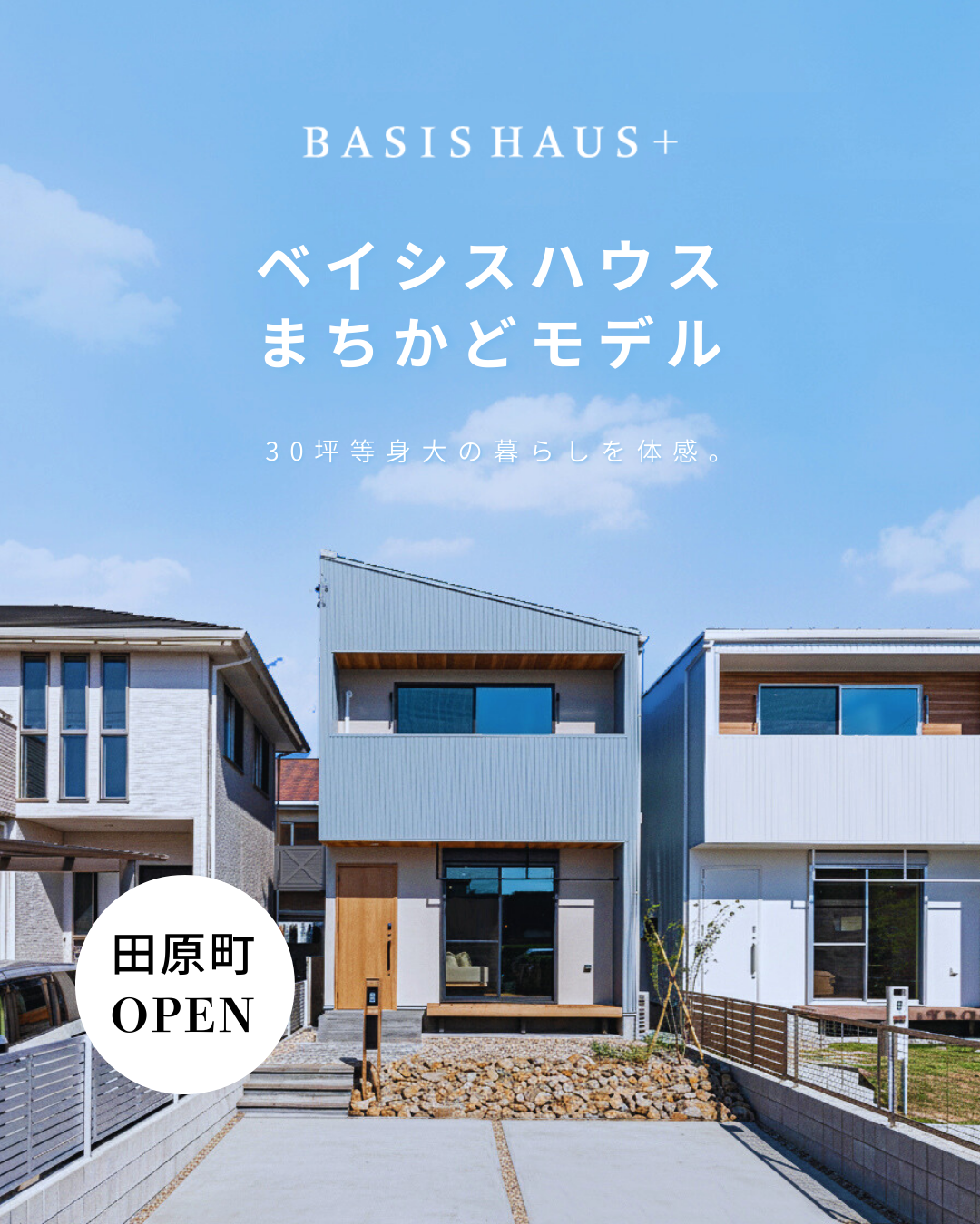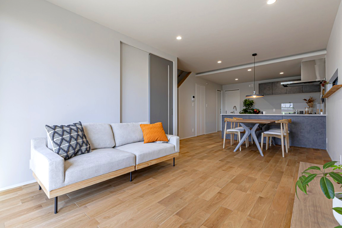 延床面積約30坪という、多くのご家族にとって「一番参考にしたいリアルな広さ」を、建築士の設計力で上質な空間に仕上げました。LDKにはナラ無垢フローリングを贅沢に採用し、天然木ならではの心地よさとインテリアの美しさを実現。ガルバリウムと塗り壁を組み合わせた、外観デザインとともに、素材感にこだわった「一点もの」の住まいを体感いただけます。