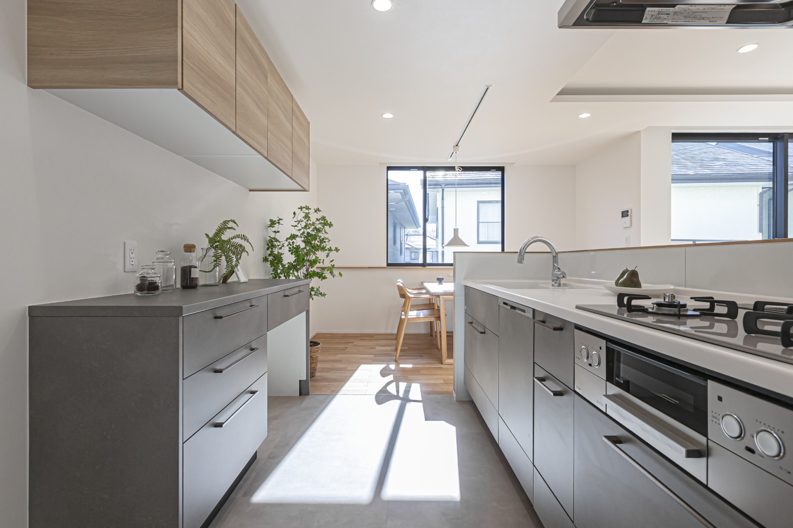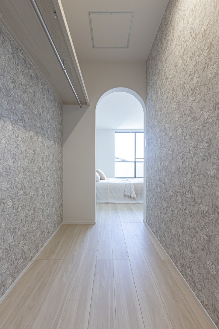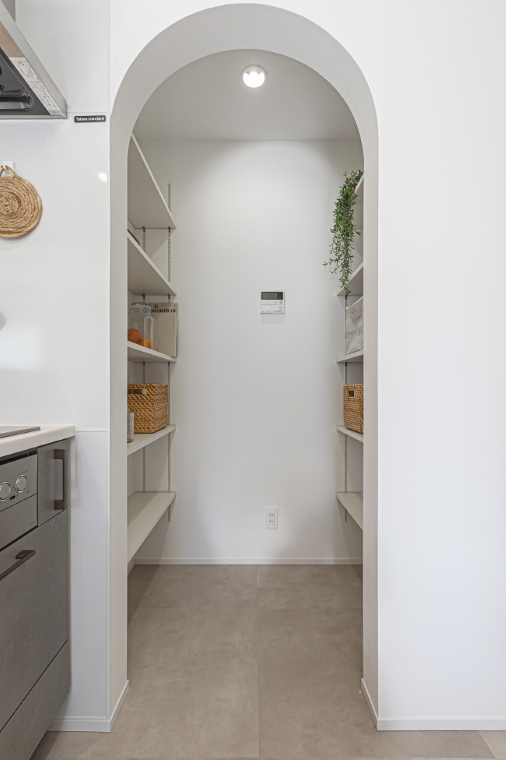 共働き世帯に嬉しい回遊動線や横並びキッチン、アーチ開口が可愛いパントリーなど、家事ラクの工夫も満載。寝室のWICに忍ばせたウィリアム・モリスの壁紙や、自分時間に浸れる隠れ家のような書斎など、2階空間も日常を彩るオリジナルなエッセンスが満載。デザインもゆとりも妥協しない、毎日の暮らしが心地よくなる住まいです。
